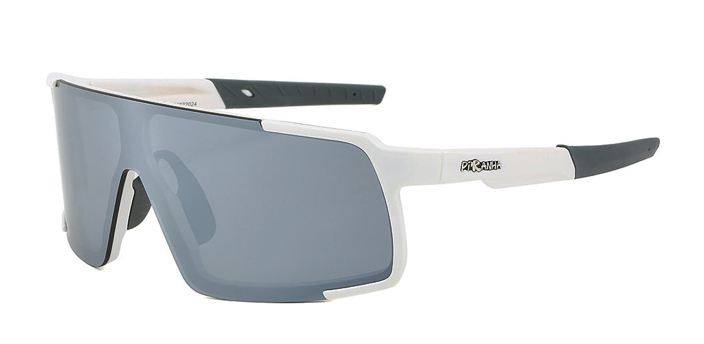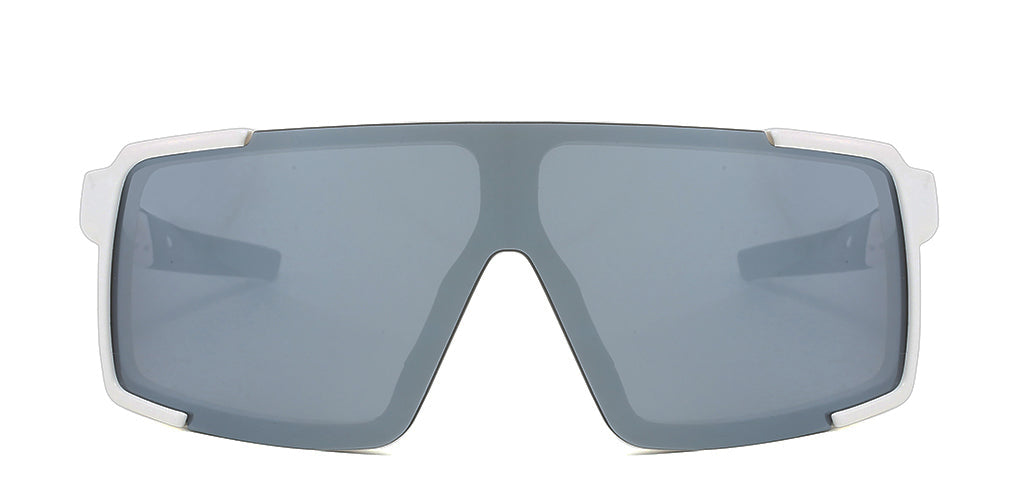 The shield style, like snow goggles, are a unisex style that works well with most faces. The lens is shatter-resistant with white mirror coating over a smoke gray color. The over-lapping lens takes the full frame style and makes it seem like a semi or half frame style. This allows the sunglasses to have full support with the appearance of a half frame. This is a style that makes a statement - a cool, icy statement. These are one of our favorites - and we know you'll love them too - so try them out today!