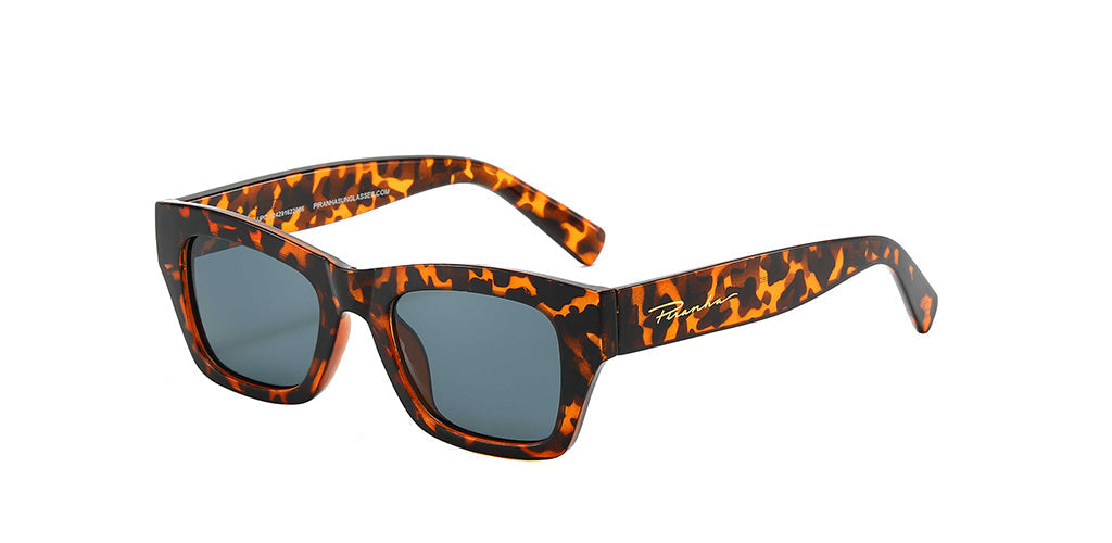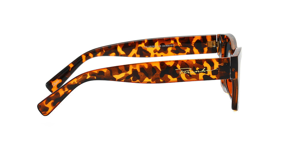 Bold, rectangular frames set these women's polarized sunglasses apart from the rest of the crowd! A gleaming carnelian orange and black demi pattern is displayed to the fullest with wide temples and a smooth angular frame. Paired with cool gray polarized lenses, these sunglasses have both substance and style.