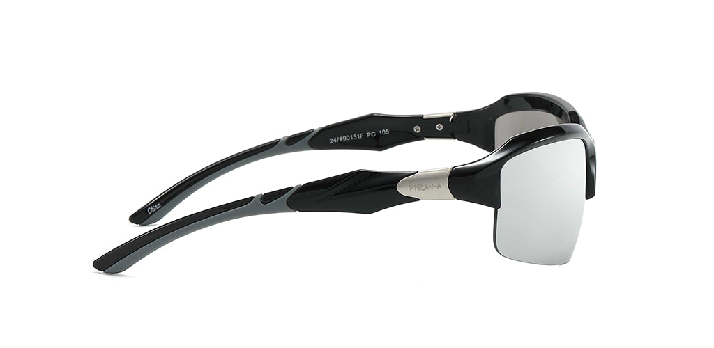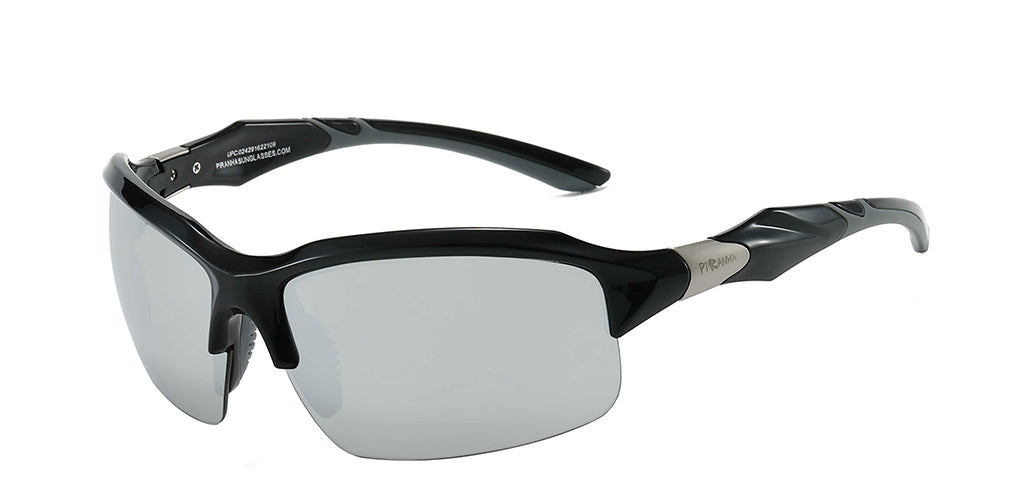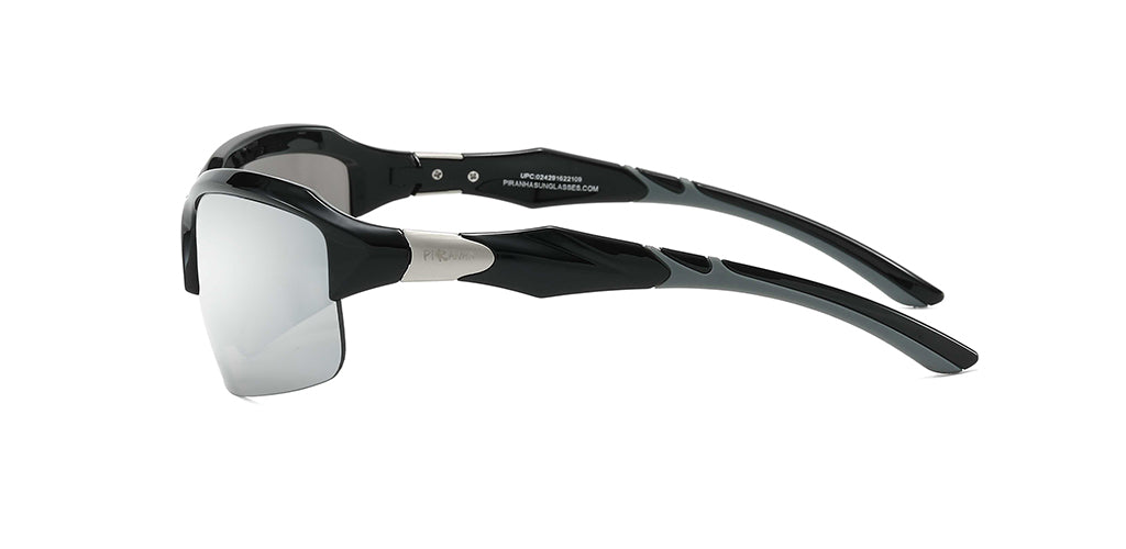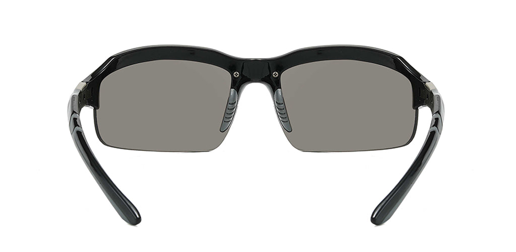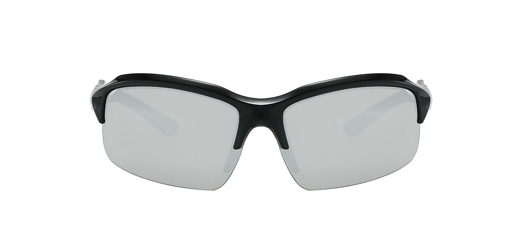 The Surge half frame sports wrap sunglasses are made with a glossy black polycarbonate and modern design. Paired with smoke gray lenses that have a light silver flash mirror, this style is smooth, sleek, and futuristic. Combining the elements of the classic sports sunglass with the curves of modern, organic styles, the Surge brings out the best of both worlds. Pick up a pair and find your new favorite sports sunglasses!
