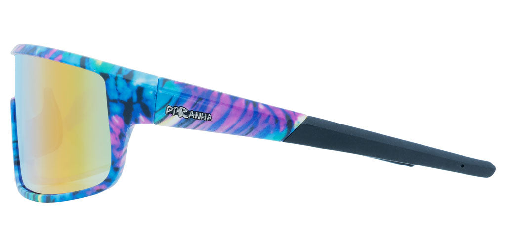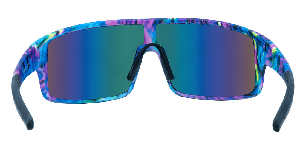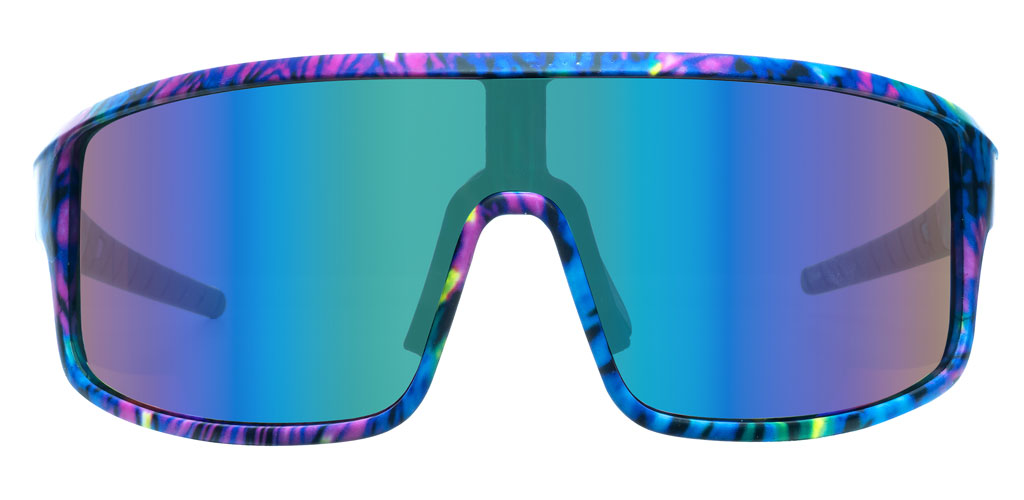 Based off of one of our most popular retro sunglasses, these cool blue sports shield sunglasses are a VIBE. You like your eyewear to be as fun as your life - and let you save money for concert tickets. Inspired by snow goggles, with a lightweight and comfy construction, you'll love how they feel and how you look in them. The tie-dye pattern is a soft treatment over polycarbonate, with flexible temples.